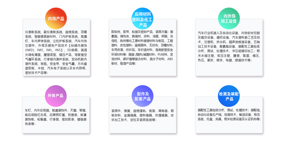2025第五屆深圳國際汽車內外飾技術展覽會(簡稱:Automotive IE 2025)將聚焦:智能座椅、汽車內飾智能表面、外飾件、輕量化、IME、觸控反饋、新型光學材料等新技術、新材料、新工藝,為國內外企業提供一個全方位技術交流合作及新產品展示平臺。同時組委會將邀請諸如特斯拉、奔馳、寶馬 、比亞迪、蔚來、理想、小鵬、大眾、廣汽、日產、本田、東風、長安、上汽、吉利、通用、一汽、麥格納、佛吉亞、江森自控、大陸、全耐塑料、安通林、豐田紡織、豐田合成、現代摩比斯、李爾、東海理化、延鋒、華域、敏實、華翔集團、常熟市汽車飾件等汽車OEM廠商及Tier 1 汽車零部件供應商的上萬名采購、技術工程師匯聚一堂。Automotive IE 2025與您相約深圳,共襄盛舉!展會規(guī)模